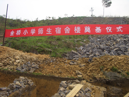 2006年10月6日,佛山市“广西扶贫爱心之旅”代表团15名成员在佛山市南庄镇团委书记伦雄良的带领下,顺利地完成了广西环江之行,南庄镇义工队负责人当时表示,将为金桥小学捐建一栋宿舍。事后,在《珠江时报》、《佛山日报》、佛山市邮政局团委、三水区云东海旅游经济区团委、佛山水业集团团委和社会友好人士的积极支持下,共筹措到了6万多元资金,与广西河池市武警支队共同建造一栋宿舍,解决师生们的住宿问题。