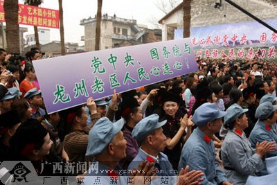 艺术团首先来到邓小平同志曾经战斗过的地方--龙州县。1929年夏,邓小平作为中央代表前往广西领导起义,化名邓斌,会同张云逸等人在该年12月和次年2月,先后发动百色起义和龙州起义,创建中国工农红军第七军、第八军和左江、右江革命根据地。