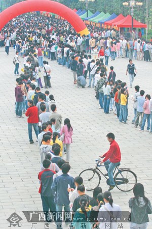 广西新闻网-当代生活报讯(记者胡玲玲)广西大学勤工助学岗位双选会今年已是第四届了。昨日,西大2500多名家庭经济困难学生应聘由学校内60个单位提供的1345个岗位,其中包括助管类、助学类、技术类、保洁类等。