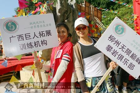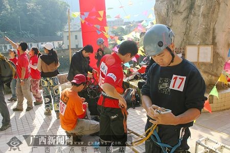 各个攀岩俱乐部的选手亮相凤山凤阳关前。记者 邓昶摄