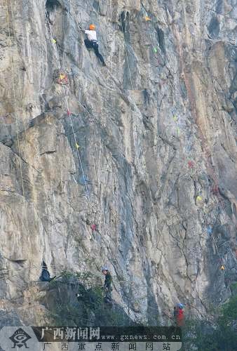 广西新闻网凤山11月10日讯(记者邓昶)11月9日上午,挑战凤阳关——世界攀岩表演赛在凤山县城举办。