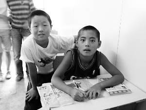 板房区的“学生”们和“老师”可谓“亲密无间”。本版图片由志愿者胡洋提供