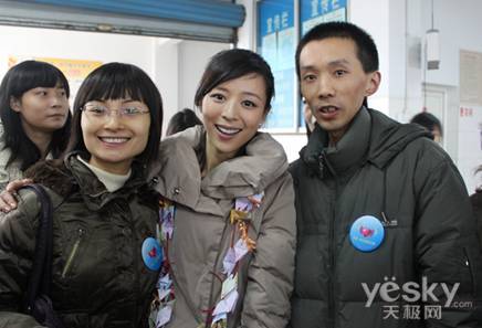 “思源·AOC彩虹计划”探访小组在宜宾县一中探访时,公益大使张静初与游艳夫妇合影
