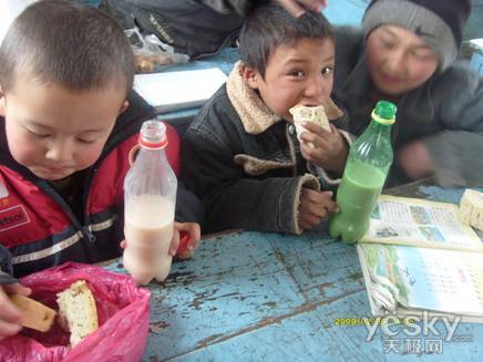 孙丽倩老师所在的新疆阿勒泰地区富蕴县喀拉通克乡一中的孩子们在午餐
