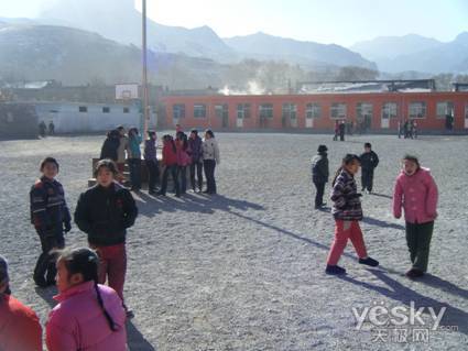 正在操场上玩耍的山西省五台县高洪口中学校的孩子们