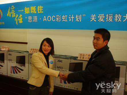 “思源•AOC彩虹计划”由国内一线显示器品牌AOC艾德蒙联合中华思源工程扶贫基金会于2008年7月设立,旨在对灾区和贫困地区的教育和文化需求进行持续关爱。自成立以来,“思源·AOC彩虹计划”已经陆续开展了向地震灾区的学生们送去御寒衣物、为老区和贫困地区学校捐建电脑教室等一系列公益活动。