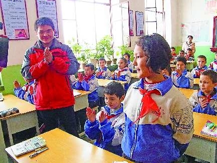 而在3月25日上午的一节语文课上,伊尔盼江却在同学们羡慕的眼光中获得了答对问题的奖励―――一个黄色的笑脸标志。这堂课是山东师范大学的“大学生老师”王凤良给他们上的第一课。