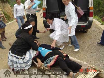 记者了解到:每年广西还有不少孕产妇在生产中死去。她们的死因,一部分仅仅是因为贫穷,因为出不起三四百元的住院费用,因为缺少一副担架,没法下山生产!南丹县妇幼保健院产科主任吴月芳,和山里的孕产妇打交道已经十几年了,她告诉记者一个难忘的故事。