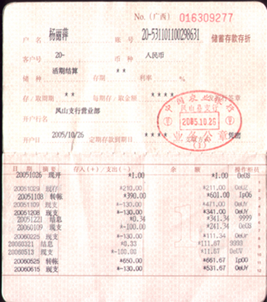 现把存折的存支情况公布如下: